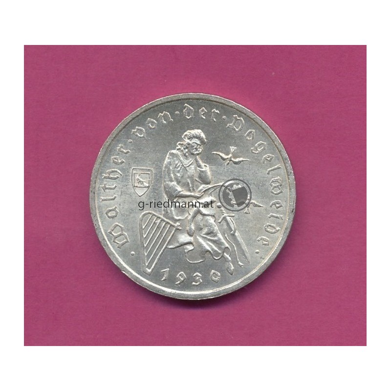 3 Reichsmark Silbermünze "700. Tt. Walther von der Vogelweide" Mi.Nr.65 Erh. VZ++