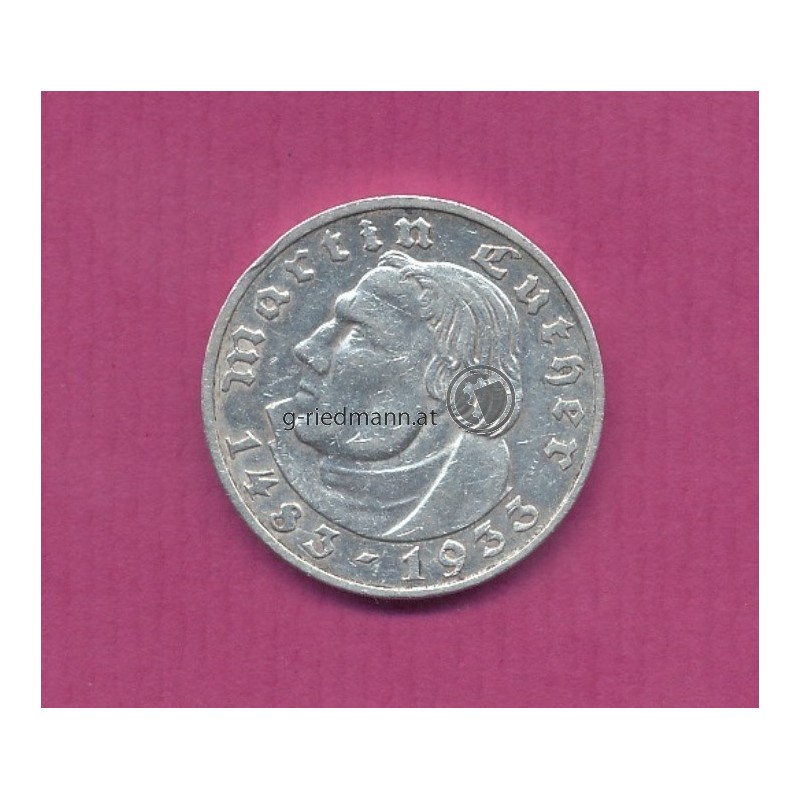 2 Reichsmark 1933 E Luther Mi.Nr.75 Erh. VZ