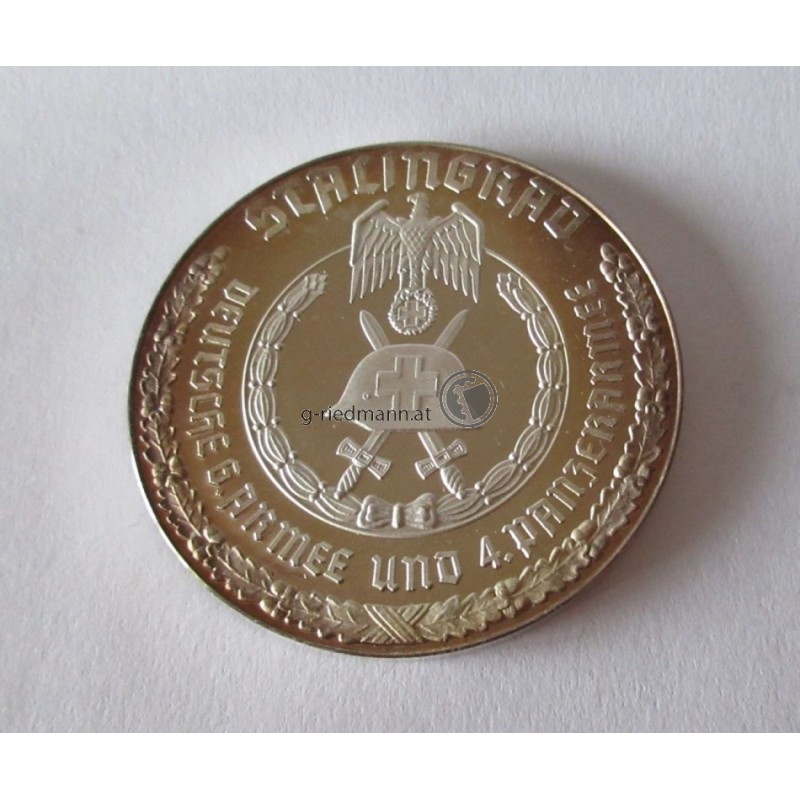 Medaille; Feinsilber(0999) "Den Männern von Stalingrad-den vielen, die blieben, den wenigen, die zurück kehrten." Feine Patina. Polierte Platte.