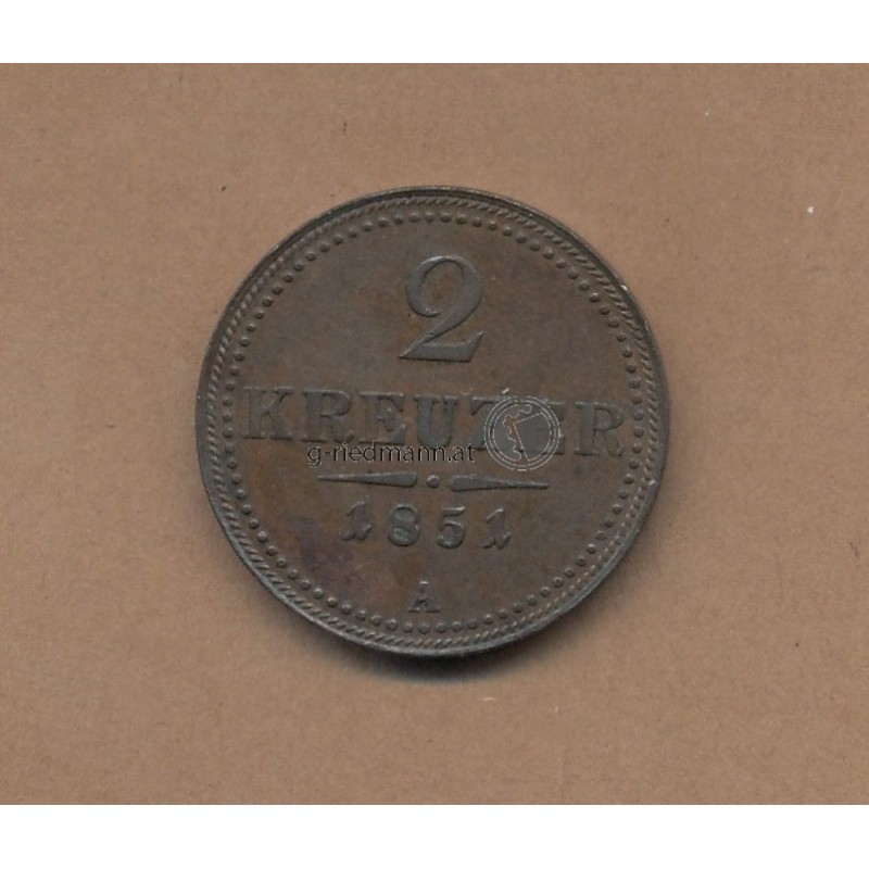 2 Kreuzer (Cu) 1851A AMK.Nr.9 Erh. VZ+