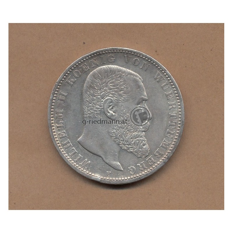 5 Mark silver coin Württemberg Mi.Nr.10 Erh. vf